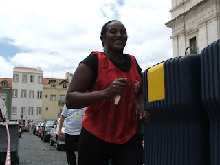 E por fim ela chega, cansada, mas vigorosa ainda, uma mulher de garra que corta a meta culminando os nossos esforços que resultaram num 5º lugar entre 10 equipas femininas. Muito bom.