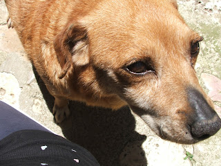 A Cindy nunca foi verdadeiramente o "meu cão". Era o cão (cadela) da casa dos meus pais. Uma entre vários que eles tiveram ao longo da vida. Mas ela persistiu ao longo dos anos. E se eu tenho 44 anos, ela esteve lá pelo menos metade da minha vida (perde-se no tempo a sua idade exacta, mas associada a outros factos, sabe-se sem incertezas que a Cindy tinha no mínimo 23 anos!). Toda a minha vida adulta portanto, ela esteve lá. E se na minha vida adulta não morava lá, sempre que lá ia, ela lá estava. Fazia parte da casa dos meus pais. Fazia parte deles! E agora deixou-os. Deixou-os e entrega-se nos meus braços. Seguro-a com firmeza e entrego-a com relutância. Como se quisesse e pudesse evitar. Como se pudesse parar o curso natural da vida. Como se pudesse impedir o inevitável: a morte. Agora dela e um dia deles. Mas não posso. Entrego-a.