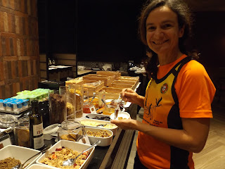 Saímos de casa sábado de manhã para irmos almoçar ao Porto. De seguida, foi preparar para ir levantar dorsais e equiparmo-nos para correr. O trajecto entre o hotel e a Loja do Munícipe junto à Partida (onde se levantavam os dorsais) foi feito a andar mas quase a correr. Um nervoso miudinho apoderou-se de mim e caminhava cada vez mais rápido, com o Fernando atrás a lastimar-se que não era preciso irmos tão depressa, mas eu não tinha feito 300 km de carro, para chegar fora de horas ao levantamento do dorsal e não conseguir correr!